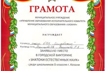 Победа в городской викторине «Знатоки естественных наук» 19.02.2015