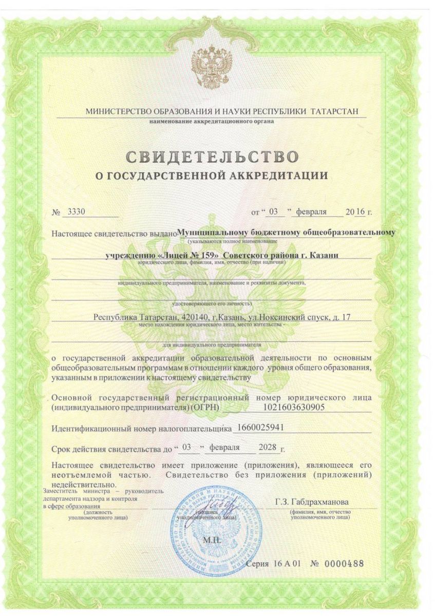 Короткое название: МБОУ "Лицей №159 имени С.Х.Загидуллиной"