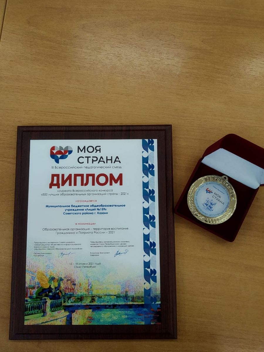 Опубликовано: 27.04.2021Лицей 159 - Лауреат Всероссийского конкурса "500 лучших образовательных организаций страны - 2021" в номинации "Образовательная организация - территория воспитания Гражданина и Патриота России - 2021"
