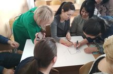 Сегодня состоялось методическое совещание, на котором были рассмотрены вопросы организации проектной деятельности учащихся. Учителя, объединившись в группы, составляли мини - проект по созданию этнографического уголка. Педагоги поделились опытом и получили положительные эмоции.