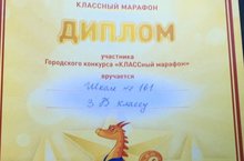 Сегодня ученики 3Б класса и классный руководитель Шаганова О.А. приняли участие в подведении итогов городского конкурса "Классный марафон". Они получили диплом участника и подарочный сертификат на 2000 рублей. Молодцы!