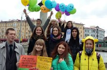Команда СМС-детей школы приняла сегодня участие в городской акции "Поделись улыбкою своей".