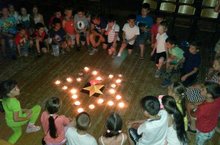 Ребята из школьного лагеря "Открытый мир" почтили память погибших минутой мочания и просмотрели видеохроники войны.