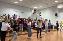 Во второй день лета наших ребятишек из пришкольного лагеря порадовала своей интерактивной игрой театральная студия « Бала». В ходе игры детишки не только вспомнили правила ПДД, но и показали свои музыкальные и танцевальные способности.