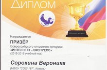 Муниципальное бюджетное общеобразовательное учреждение «Средняя общеобразовательная школа №167 с углубленным изучением отдельных предметов» Советского района г. Казани