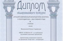 Поздравляем Фаюршину Илюзу Гарафиевну, удостоенной Диплома общероссийского конкурса 2 степени «Лучший современный бинарный урок»