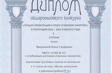Поздравляем Фаюршину Илюзу Гарафиевну, удостоенной Диплома общероссийского конкурса 1 степени «Лучшая презентация к уроку»