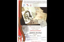 Дипломом участника IV Всероссийского конкурса чтецов им.Г.Тукая «Джалиловцы» награждается Касимова Адиля.