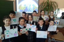 Сегодня в школе были проведены уроки "Космос - это мы!", а учащиеся младших классов изготовили рисунки на эту тему и была организована выставка "Звёздам навстречу! -