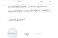 Приказ о принятие трех детей в первый класс 2017-2018 уч. года