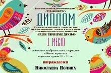 1 место в Республиканском конкурсе творческих работ "Наши пернатые друзья" 05.04.2022