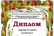I урын - Ахметшина Сафина, 4 сыйныф укучысы (Укытучы Гөбәева Э.Р), II урын - Гильмутдинова Камилла, 3 сыйныф укучысы (Укытучы Гафурова Ә.С), III урын - Яруллин Тамирлан, 3 сыйныф укучысы (Укытучы Гафурова Ә.С), лауреатлар: Малкина Виолетта, 8 сыйныф укучысы (Укытучы Пономарева А.Б), Николаева Полина, 6 сйныф укучысы (Укытучы Корнилова Е.Д).