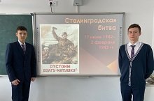 Сегодня в нашей гимназии проходили уроки, посвященные важной исторической дате 02 февраля 1943 года. В этот день в 1943 году прозвучали последние залпы одной из важнейших битв Великой Отечественной войны – Сталинградской. Сталинградская битва коренным образом изменила ход войны и стала предвестником Победы советских войск над гитлеровской Германией. Ученики подготовили выступления, посвященные памятной дате, рассказывали о ходе боевых действий, героях и значении Сталинградской битвы. В знак скорби и почтения памяти по трагическому событию провели минуту молчания. Мероприятие организовали учитель истории Корнилова Екатерина Дмитриевна, учитель родного языка и литературы Гафарова Гульнара Галимхановна
