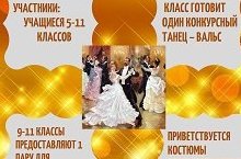 Дорогие друзья! Традиционный гимназический бал состоится в декабре! Бал - это всегда праздник, яркий, красочный, искрящийся, веселый... Этот праздник является самым желанным для наших гимназистов! Тема бала: "Казань 19 века". Приглашаем обучающихся 5-11 классов! Класс готовит 1 конкурсный танец-вальс. Обучающиеся 9-11 классов представляют 1 пару для постановки общего танца. Приветствуются костюмы, соответствующие эпохе! До встречи, друзья!