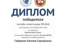 Поздравляем Гафарову Камилю, ученицу 6 класса, блестяще выступившую в трех онлайн-олимпиадах Winkid: победитель олимпиады по русскому и татарскому языкам и математике! Благодарим учителей Зарипову А.Н., Гафарову Г.Г., Самигуллину М.Г.