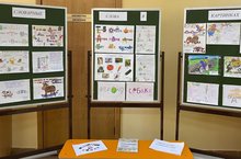 В фойе гимназии оформлена выставка работ учащихся начальных классов на тему "Словарные слова в картинках". Картинки со словарными словами получились очень интересные, яркие . Такой вид работы помогает зрительно запомнить правописание словарных слов и развивает орфографическую зоркость учащихся.