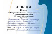 26 февраля прошла VIII Всероссийская научно- исследовательская конференция школьников и учителей "По следам Алиша" с использованием сервиса видеосвязи zoom. Из нашей гимназии приняла участие Гильмуллина Дина Дильбяровна и была награждена дипломом.