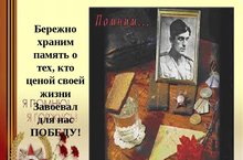 В пришкольном лагере продолжается проведение цикла мероприятий, посвященных теме войны. Словно «ожившая» история предстали перед детьми эпизоды документальных фильмов о Великой Отечественной войне. Спортивную эстафету «Мы – правнуки Победы» юные спортсмены посвятили памяти Героев Советского Союза. Затем состоялась презентация самостоятельных работ – выступлений воспитанников. Ярко, с гордостью рассказывали ребята о своих прадедушках и прабабушках – участниках войны и тыла.