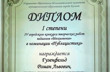 Управление образования г.Казани совместно с Горметодкабинетом ежегодно проводит конкурсы творчески работающих учителей, в т.ч. учителей русского языка и литературы. В них активное участие принимает преподаватель МБОУ «СОШ №175» - учитель русского языка и литературы высшей категории, Почетный работник общего образования России Гузенфельд Роман Львович.