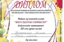 17 ноябрьдә Дәрвишләр бистәсендә урнашкан балалар иҗат үзәгендә бик матур бәйрәм - "Сөмбелә” бәйгесе үткәрелде. Безнең мәктәбебездән биредә 6а сыйныфы укучысы Лилия Батыршина катнашты һәм мактаулы 3нче урынны яулады. Без тырыш һәм сәләтле укучыбызны тәбрик итәбез һәм аңың киләчәктә яңадан - яңа уңышларга ирешүен теләп калабыз.