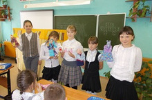 Ученики 1 б и 2 б классов в группе продленного дня познакомились с куклами – артистами. Наставники из 5г класса познакомили их со сценарием сказки «Курочка Ряба», раздали роли, научили обращаться с куклами.