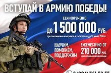Ведется военная служба по контракту. Единовременная выплата до 1,5 млн. рублей при заключении контракта до 31 июля 2024 года. Заработная плата от 210 тысяч рублей. Номер телефона для связи - +7(843) 223-19-00