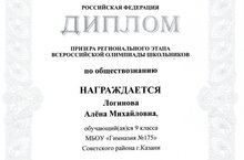 Нашу гимназию представляли обучающиеся 9Б класса: Валиуллина Диана и Логинова Алена. Олимпиада проходила в два тура. Задания были непростые: работа с текстом, вопросы открытого типа, задачи, тесты и т.д. Девочки показали глубокие знания предмета, продемонстрировали эрудицию в области обществознания. Логинова Алена стала призером региональной олимпиады по обществознанию. Такого успеха ей удалось достичь благодаря целеустремленности, настойчивости и систематической, кропотливой работе по подготовке к олимпиаде. Поздравляем Алену и благодарим учителя обществознания - Якупову Гюзель Альбертовну, с победой, желаем дальнейших успехов в научной и творческой работе -
