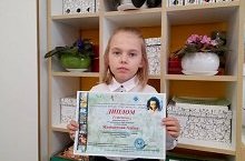 Список побед в олимпиадно-конкурсном движении открывает Мамонтова Алёна, ученица 3г класса, занявшая 1 место во Всероссийском конкурсе " Мир А.С.Пушкина" (учитель Ямалутдинова Э.Р.). Алёна всегда радует класс и гимназию своим творчеством, красиво рисует, её работы все оригинальны и наполнены смыслом. Желаем нашей ученице дальнейших побед в её творческих начинаниях!