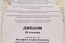 14 апреля ученица 7б класса Гафарова Камиля приняла участие в городской научно-практической конференции обучающихся и педагогов «Дружба народов – единство России» и заняла призовое место. Поздравляем Камилю и желаем ей дальнейших успехов! Благодарим учителя татарского языка и литературы Гафарову Гульнару Галимхановну за подготовку ученицы к конференции