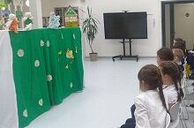 “Азино” балалар иҗади үзәгендә халык иҗатына багышланган иҗади бәйге булып узды. Театраль сәнгать номинациясендә гимназиябезнең 8 а сыйныфы укучылары төркеме җитәкчеләре (Әхтәмова Г.М) белән берлектә 1нче урынга лаек булдылар. Укучыларыбыз кечкенә курчакларны кулда тотып уйнау гына түгел, сөйләмгә дә, декорацияне тиешле музыка белән аралаштырып бирүгә дә зур игътибар итте. “Тылсым” курчак театры түгәрәк эшчәнлеге былтыргы уку елыннан бирле бик уңышлы итеп үз эшчәнлеген алып бара. Киләчәктә дә яшь артистларыбызга уңышлар теләп калабыз