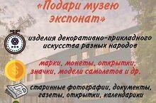 Наш школьный краеведческий музей объявляет акцию «Подари музею экспонат». В качестве экспонатов могут быть предоставлены предметы самого разного типа. Став музейными предметами, эти вещи получат новую жизнь, будут представлены на выставках и в экспозициях музея. Для оформления экспозиций необходимы предметы, которые могут представлять собой: - изделия декоративно-прикладного искусства разных народов (посуда, одежда, украшения, вышивка, головные уборы и др.); - коллекционные предметы (марки, монеты, открытки, значки, модели самолетов и др.); - вещи или предметы военного времени (военные письма, медали, удостоверения и др.); - школьные принадлежности и вещи времен пионерии (галстуки, линейки, дневники, чернильница с пером, компас, школьная форма, игрушки времен СССР и др.) - книги татарских поэтов и писателей, учебные пособия и др. - старинные фотографии, документы, газеты, открытки, календарики и прочее. Экспонаты приносим в школьную библиотеку-медиатеку до 20.12.2022г. Ждем активного участия всех классных коллективов, педагогов гимназии, родительской общественности!