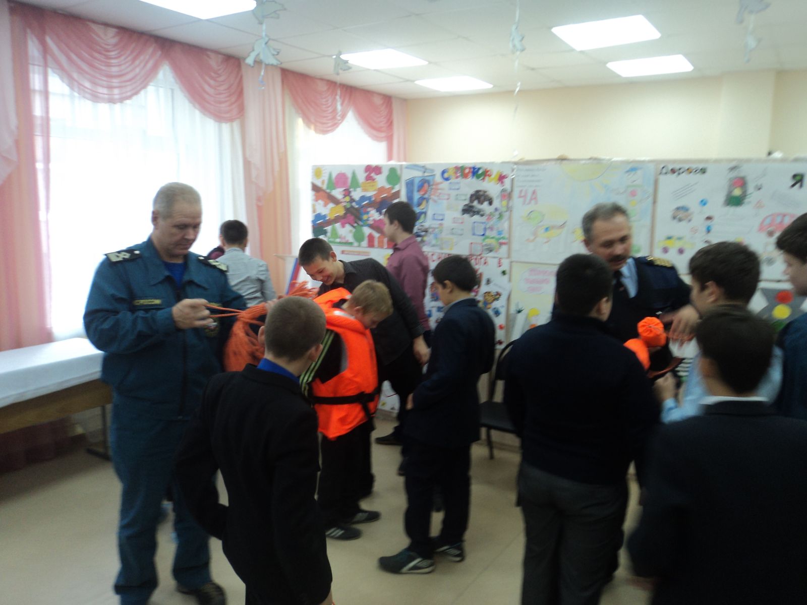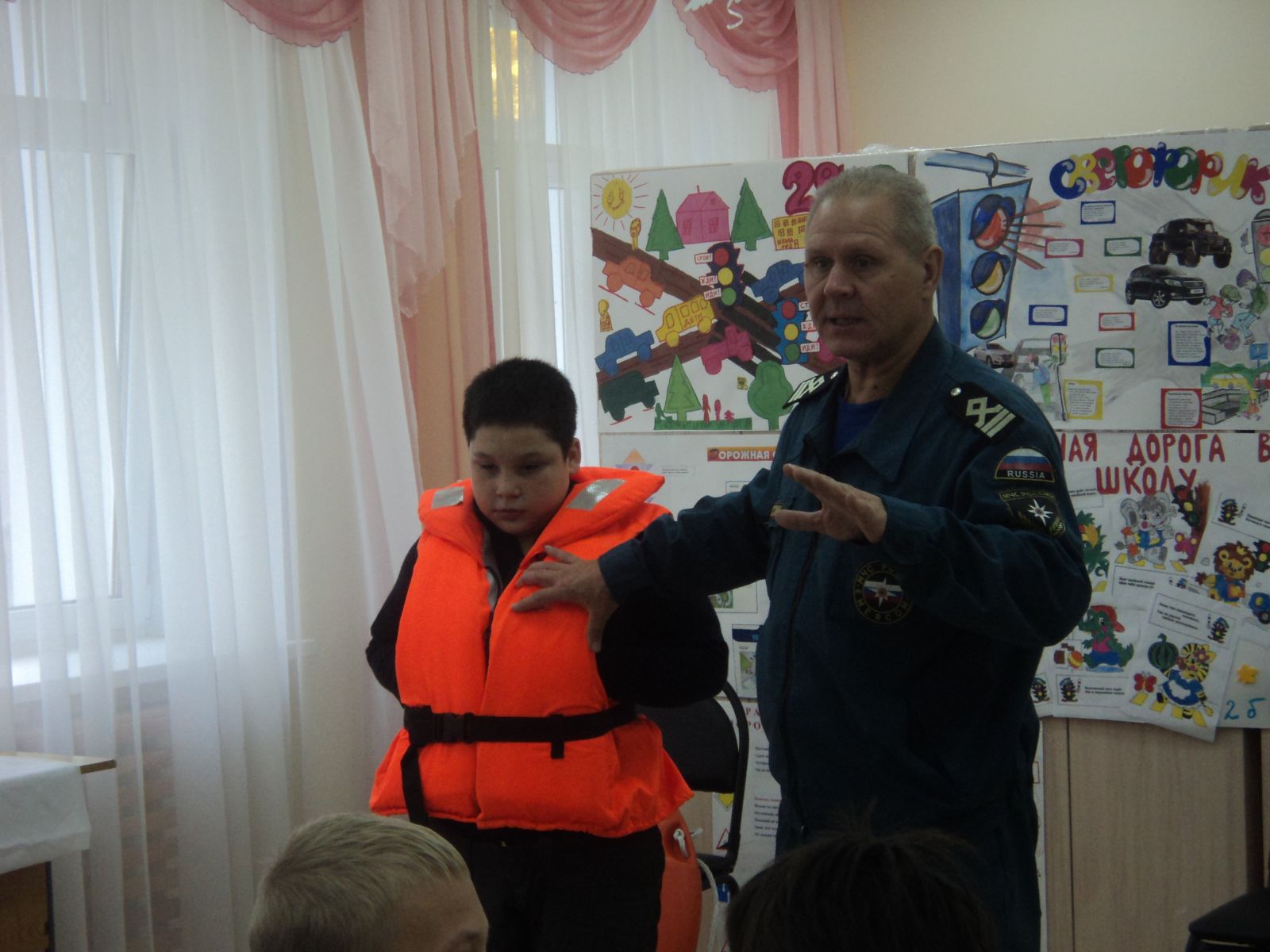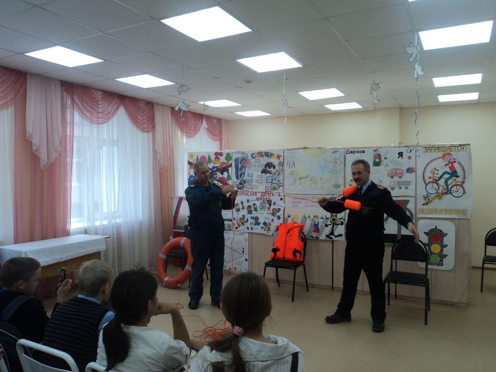 29.09.16г. представители центра Государственной инспекции по маломерным судам министерства РФ по делам гражданской обороны, чрезвычайным ситуациям и ликвидации последствий стихийных бедствий по РТ Ягафаров А.А и Бачурин С.В. выступили перед нашими учащимися с очень нужной, поучительной и интересной беседой о том, как правильно вести себя на воде. В ходе беседы дети учились правильно надевать спасательный жилет, бросать веревку, зацепляться за спасательный круг. В конце встречи гости вручили грамоты и призы за активное участие в конкурсе плакатов по ПДД, раздали памятки по ОБЖ и ответили на все вопросы ребят. Фото1,Фото2,Фото3,Фото4.