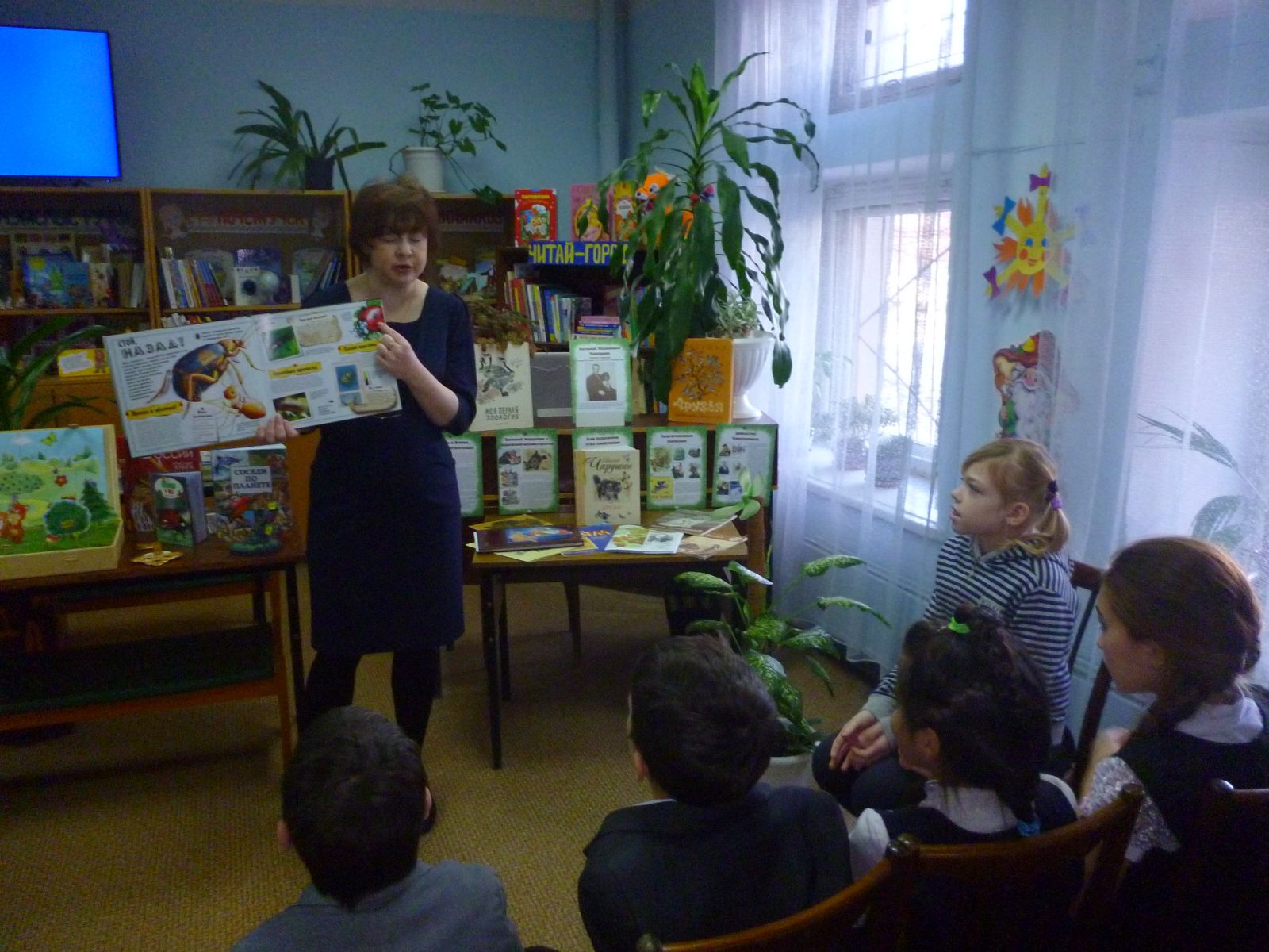 15.11.16г. учащиеся 2а, 3б классов вместе с педагогом-библиотекарем Федотовой Г. С. посетили библиотеку филиал №37 отдела искусств ЦДБ МБУК «ЦБС г. Казани», где библиотекарь читального зала Канаева И. В. провела экологический час "Жили были рыбы, птицы, звери" приуроченную к 115-летию советского графика, скульптора и писателя Е. И. Чарушина. Ребята послушали интересные истории о животных и птицах, просмотрели мультфильм "Мальчик и лягушонок". Затем главный библиотекарь Пекина Л. П. провела презентацию новых детских книг и музыкальную игру "Кто поет?" Еще ребята посмотрели выставку "Чудеса своими руками". Спасибо за очень интересные мероприятия! Фото1,Фото2,Фото3,Фото4,Фото6.