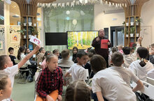 21 ноября в нашем театре прошла традиционная командная викторина Клуба «ЭкоЛидер», объединяющая различные объединения ГДЭБЦ. Перед началом викторины наши юные артисты разыграли смешную комедию «Осенняя история». В представлении в роли Медведя на сцене оказался … сам руководитель театра Шкуро Андрей Александрович – харизматичный и актерски одаренный человек. Новая версия спектакля вызвала живой интерес и смех в зале, настраивая игроков на дружелюбную атмосферу. Команды представили свои «урожайные» поделки, потом дружно отвечали на вопросы ведущего. Победили в весёлом, хоть и нелёгком пятиборье «Золотые колоски» из гимназии 125, но порция новых знаний и хорошего настроения досталась всем присутствующим. На следующий день в Эко-центре «ДОМ» будет проходить новая встреча участников этой викторины.