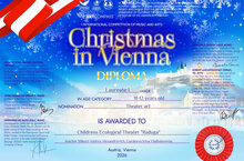 Спектакль Экологического театра «Приключения маленького птенчика», приуроченный к городскому орнитологическому празднику «Птица года», после всероссийского успеха в Крыму получил и мировое признание: диплом лауреата I степени Международного конкурса «Рождественская Вена». Члены жюри из Австрии, Франции, Италии и Израиля высоко оценили совместную работу Р.З.Гатауллина (основа сценария), И.В.Гордеевой (режиссура), А.А.Шкуро (руководство и оформление) и 11 юных артистов – от «заслуженных» до дебютантов (Валерия Коршунова в роли Эколёнка). Конечно, оценку получил видеоролик, но документальная съёмка при большом числе доброжелательных зрителей – без какого-либо монтажа, но с ответной реакцией зала – тоже немало значит! Спасибо всем участникам орнитологического праздника, благодаря которому наши юные актёры узнали много нового и сделали шаг вперёд в своём сценическим творчестве.
