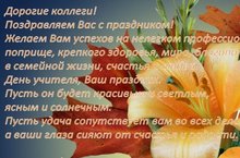 Дорогие коллеги! Поздравляем вас с Днем учителя! Желаем вам больших творческих успехов, новых свершений и побед! Вместе мы можем многое, если каждый из нас вложит частичку добра, знаний, умений, ну и частичку своего сердца. Без этого в нашей профессии нельзя. Успехов вам!