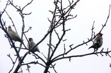 В ГДЭБЦ поселилась большая стая свиристелей. Они перелетают с дерева на дерево, дружной стайкой садятся на яблоню и важно глядят по сторонам, будто сторожат свою красавицу-яблоньку. Наряд у них необычный: перышки на груди и на крыльях красноватые, а на голове – пушистый хохолок, крылья - черные с яркими желтыми полосками, а на концах перьев и на голове разбросаны красные пятнышки.