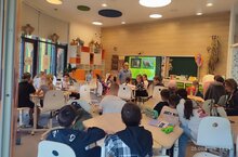 В 8.40 педагог ГДЭБЦ Ануфриева Юлия Владимировна провела совместное мероприятие выпускного 5 класса, который обучался у педагога начальной школы, и первоклассников. Малыши впервые услышали от своих наставников-пятиклассников о проблемах экологии и получили в подарок игрушку-ловилку, сделанную своими руками из пластиковой бутылки. Они научатся сортировать мусор, наблюдать за природными явлениями и станут людьми, которые по-настоящему будут заботиться о природе.