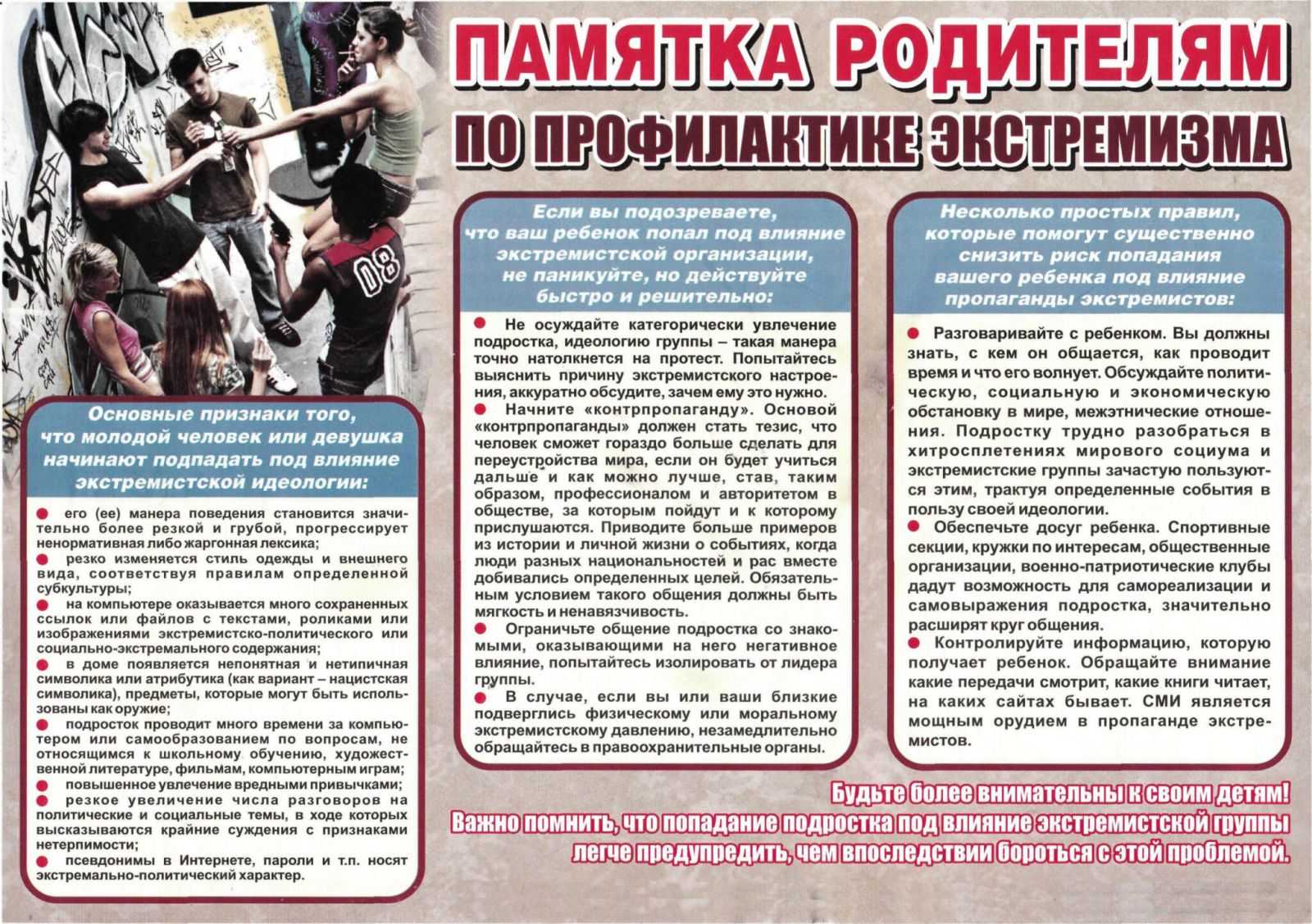 Памятки родителям по профилактике экстремизма; 1) 2) 3)