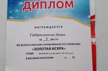 17-18 декабря 2022 года в городе Казань прошли Всероссийские соревнования по тхэквондо «Золотая искра». Ученица 8 Б класса Диана Габдрахманова в сложной и упорной борьбе стала обладателем почетного III места. Поздравляем Диану и желаем новых побед!