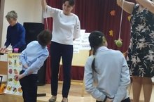 24 октября в среднем звене прошло мероприятие "Праздник урожая". Учащиеся читали стихи, показывали сценки, танцевали, рисовали, участвовали в конкурсах и играх, посвященных сбору урожая. К празднику дети подготовили рисунки и поделки. Самым творческим оказался 5 А класс.