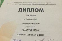 20-23 ноября 2018 г. В Москве прошёл IV Национальный чемпионат по профессиональному мастерству среди инвалидов и лиц с ограниченными возможностями здоровья "Абилимпикс". Наша ученица 12 А класса Фасхутдинова Эльвира заняла 1 место в компетенции " Парикмахерское искусство".