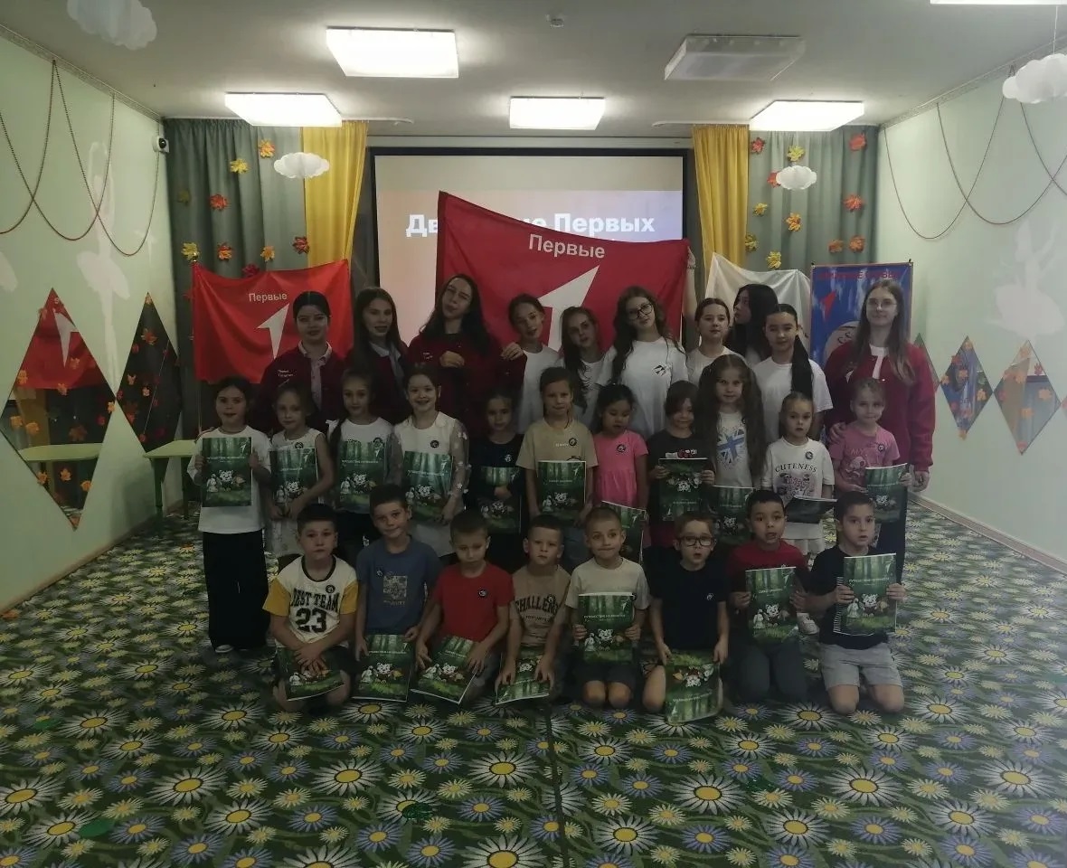 В нашем детском саду прошло торжественное вручение значков "Движение первых" и рабочих тетрадей для воспитанников ДОУ старших возрастных групп. Учащиеся гимназии №184 вручили детям рабочие тетради и познакомили с направлением "Движение первых". -