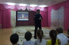 В нашем детском саду состоялась встреча с инспектором по пропаганде БДД ОАО и ПБДД ОГИБДД УМВД России со старшем лейтинантом полиции Фархутдиновым Маратом Сагитовичем и ведущим специалистом отдела профилактики территориального упралвния г.Казани ГБУ "БДД" Мударисовой Лилией Масгутовной с детьми старшего дошкольного возраста. Дети показали свои знания по ПДД и посмотрели мультфильмы.