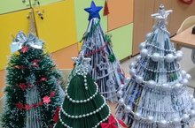 Вот такую новогоднюю красавицу своими руками сделали ученики 4А класса. В качестве материала использовали обычные рекламные журналы, которые можно найти в любом общественном заведении. Теперь эти красавицы украшают кабинет, а ребята ждут подарков от Деда Мороза.