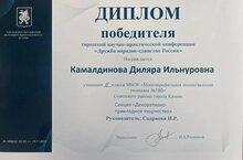 "Халыклар дуслыгы- Россиянең бердәмлеге" шәһәр күләмендәге фәнни-практик конференциядә катнашып, ҖИҢҮЧЕ исемен алган 6г сыйныф укучысы Камалдинова Диләрәне (укытучысы: Садриева И.Р) чын күңелдән котлыйбыз! Горурланабыз,рәхмәтебезне җиткерәбез! Уңышлар телибез!