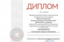 Поздравляем ученицу 6А класса Галимову Самиру дипломом I степени в Межрегиональной НПК школьников «Наука и общество: взгляд молодых исследователей»! Выражаем благодарность учителю математики Нигематзянову И.Х. Желаем им дальнейших успехов!