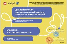 Поздравляем с яркой и достойной победой в очной олимпиаде по русскому языку (организатор КФУ) ученицу 3Г класса Шаехову Амину! Выражаем благодарность Вахитовой Д.Н. и желаем им дальнейших успехов!