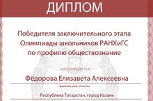 Поздравляем ученицу 11а класса Федорову Елизавету с победой в Олимпиаде РАНХиГС по обществознанию!