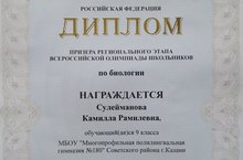 Поздравляем призера по биологии 29.01.2021